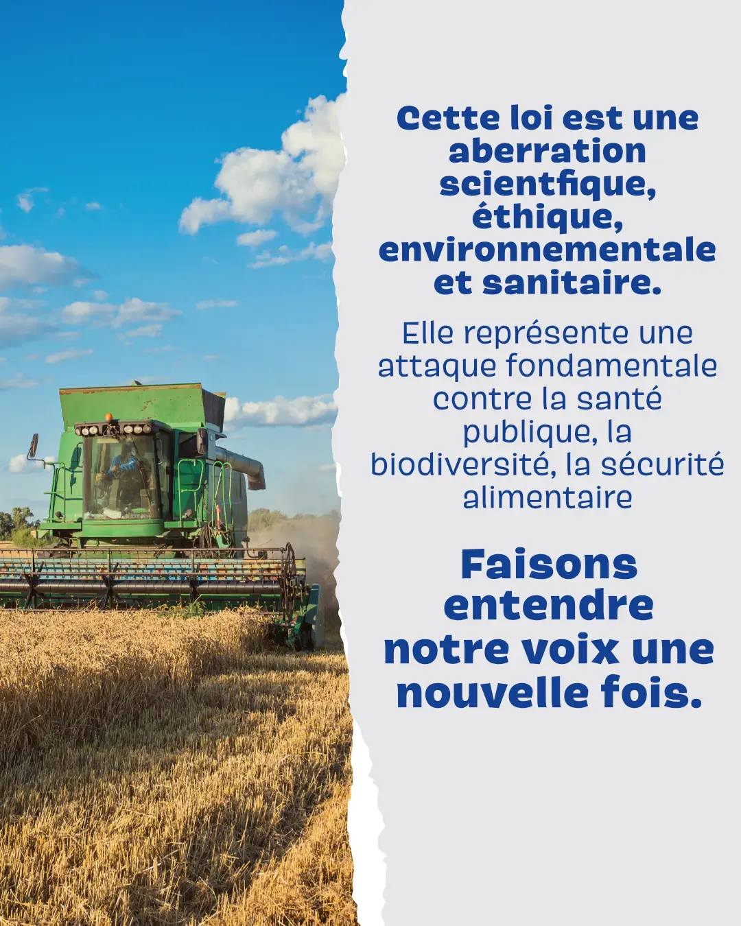 Cette loi est un recul scientifique, environnemental et sanitaire. Elle menace la santé publique, la biodiversité et l’avenir de notre agriculture. La mobilisation a déjà été massive. Mais ce n’est pas fini. Chaque signature compte pour relancer le débat à l’Assemblée nationale. Nous avons le pouvoir de faire entendre notre voix, encore une fois. Signez et partagez autour de vous ! Lien de la pétition : https://petitions.assemblee-nationale.fr/initiatives/i-5103